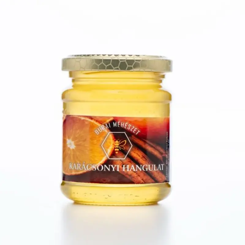 A karácsonyi hangulat-os méz egy különleges ízesített méz, amely a lágy és világos Akácméz és a természetes fahéj és narancs intenzív aromájának találkozásából készül. A mézhez 100%-os fahéj és narancs fűszercsepp kerül, amely karácsonyi hangulatot varázsol a méz ízében.