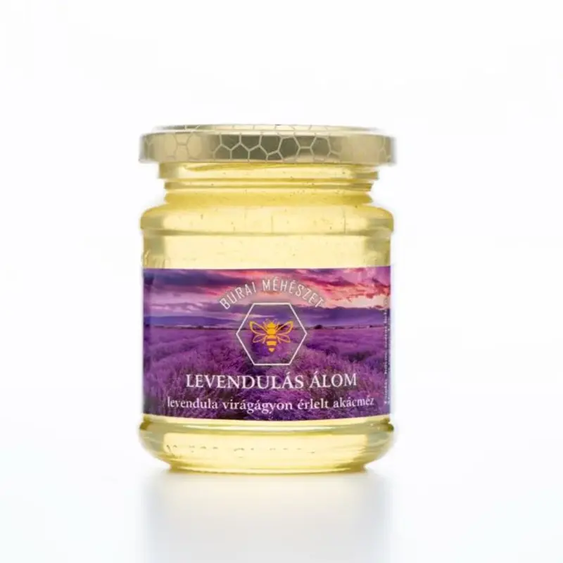 Saját méhészetünkben termelt akácmézünkbe hónapokig érleljük a szárított levendulát, így teljesen magába szívja az akácméz a levendula aromáját.
